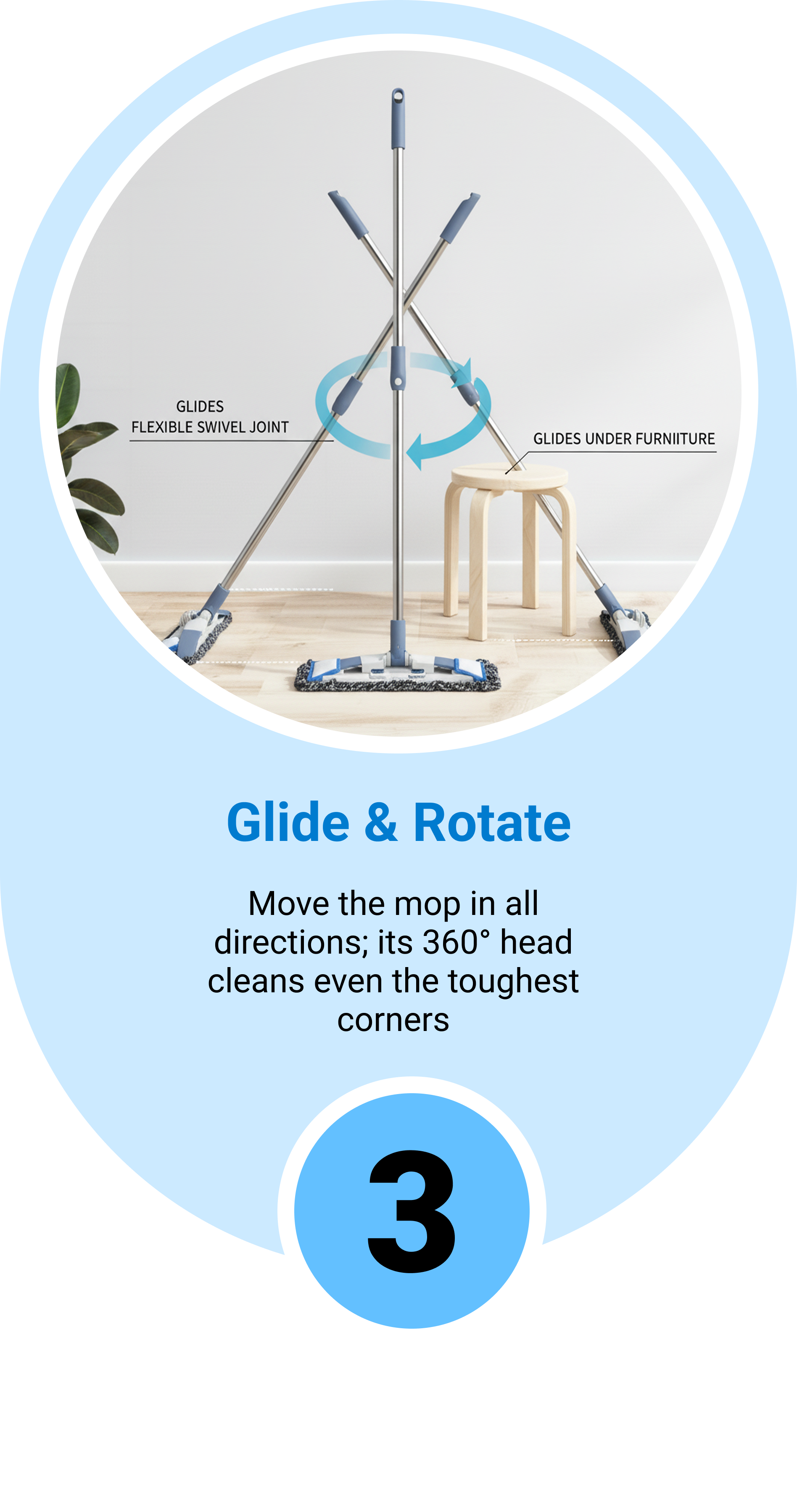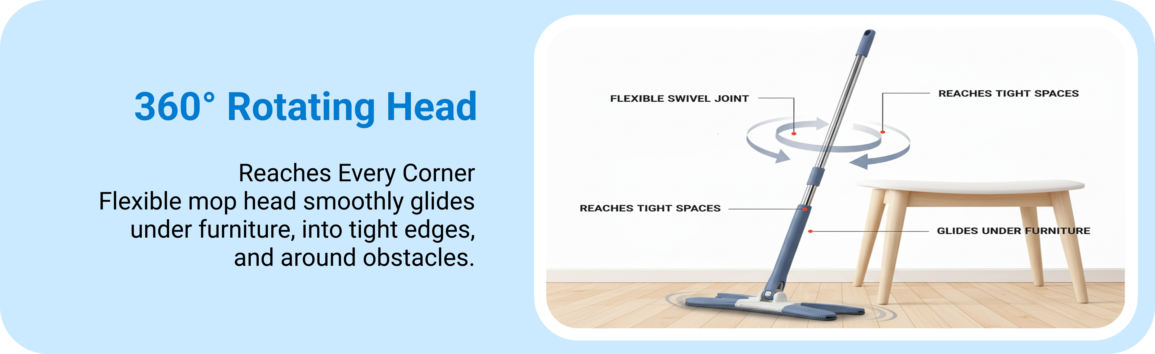 From self-squeezing to 360° flexibility, this mop simplifies cleaning for every home and corner.
