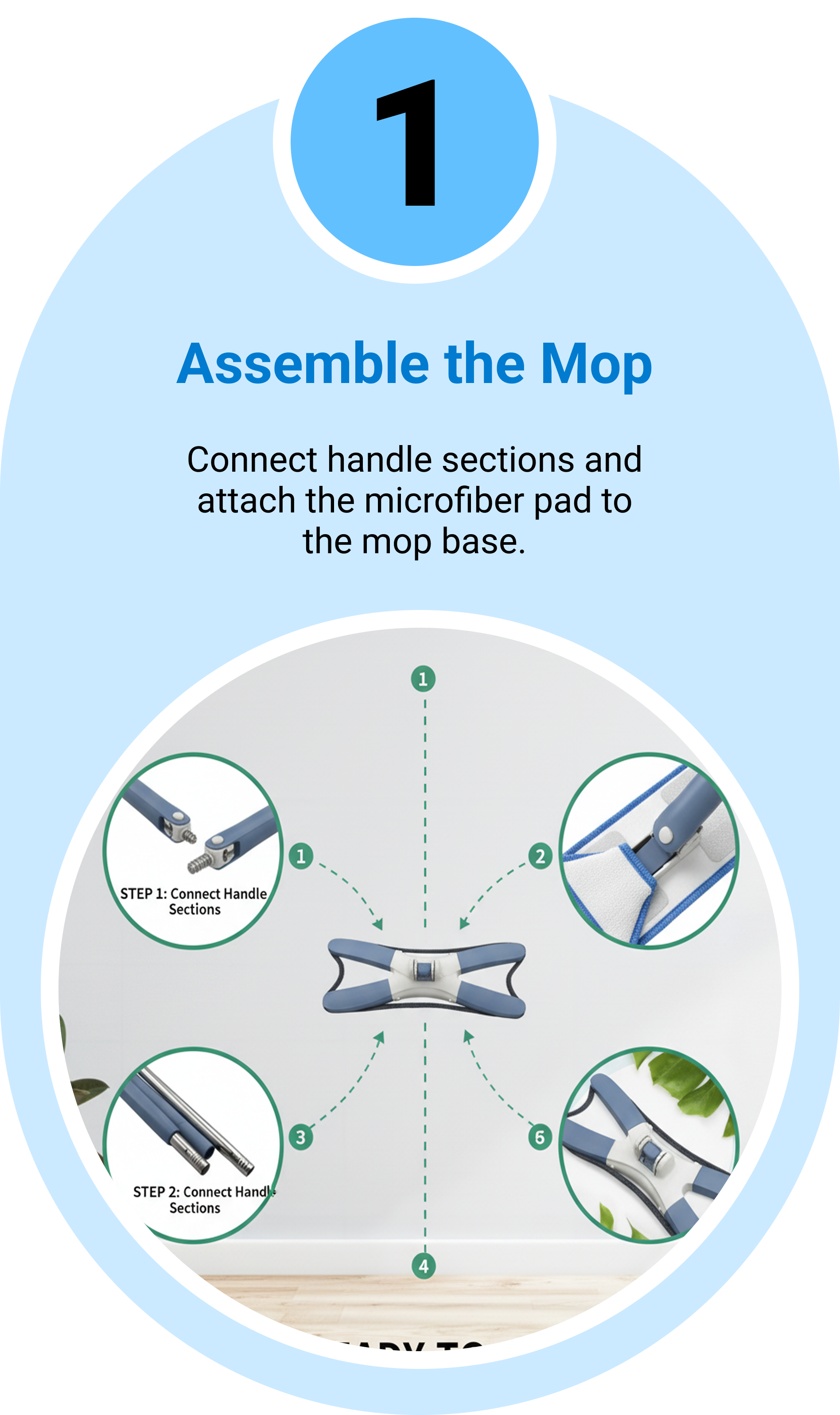 Detachable Design Detachable design, the adjustable cleaning mop is easy to use and store without taking up space. Assembles easily, turns it into a long mop, helping to improve cleaning efficiency.